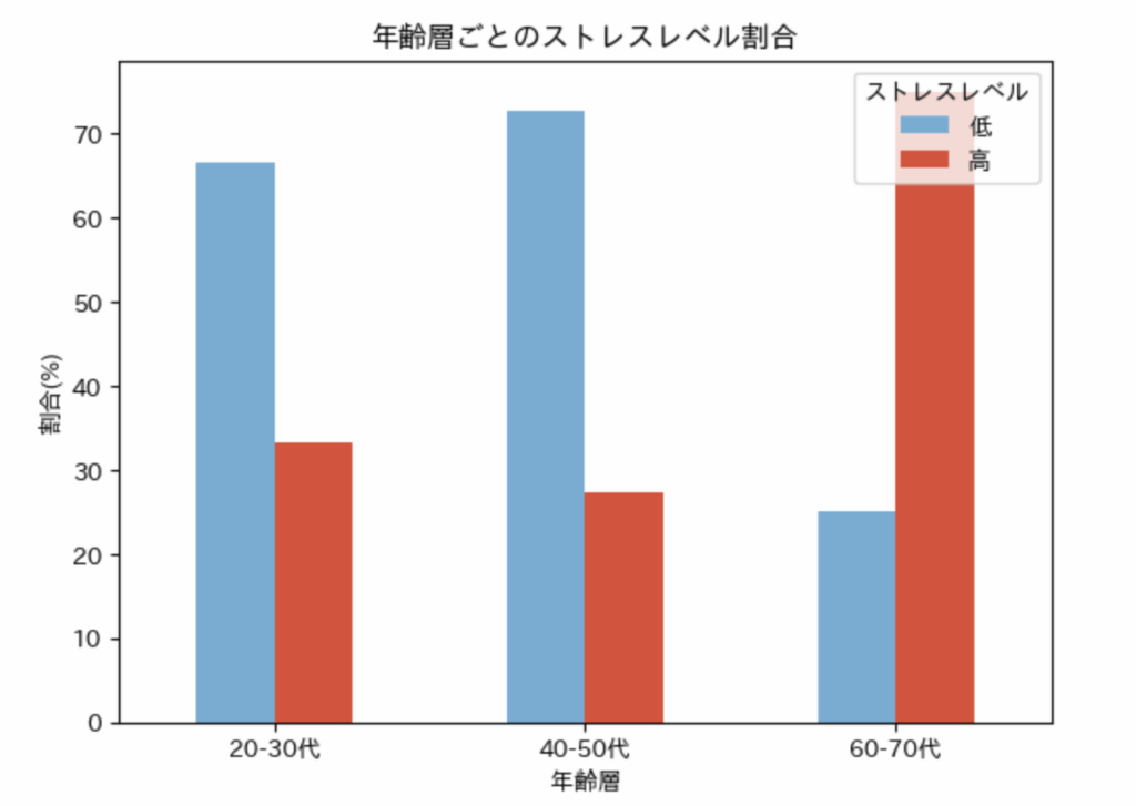スタンダードプランの分析に加えて、複雑なクロス集計(部署×年齢層など)、散布図・ヒートマップ等といった高度な可視化を行い、文章ベースの改善提案も添えます。経営層や人事部門での健康経営の方針検討に役立つ内容です。